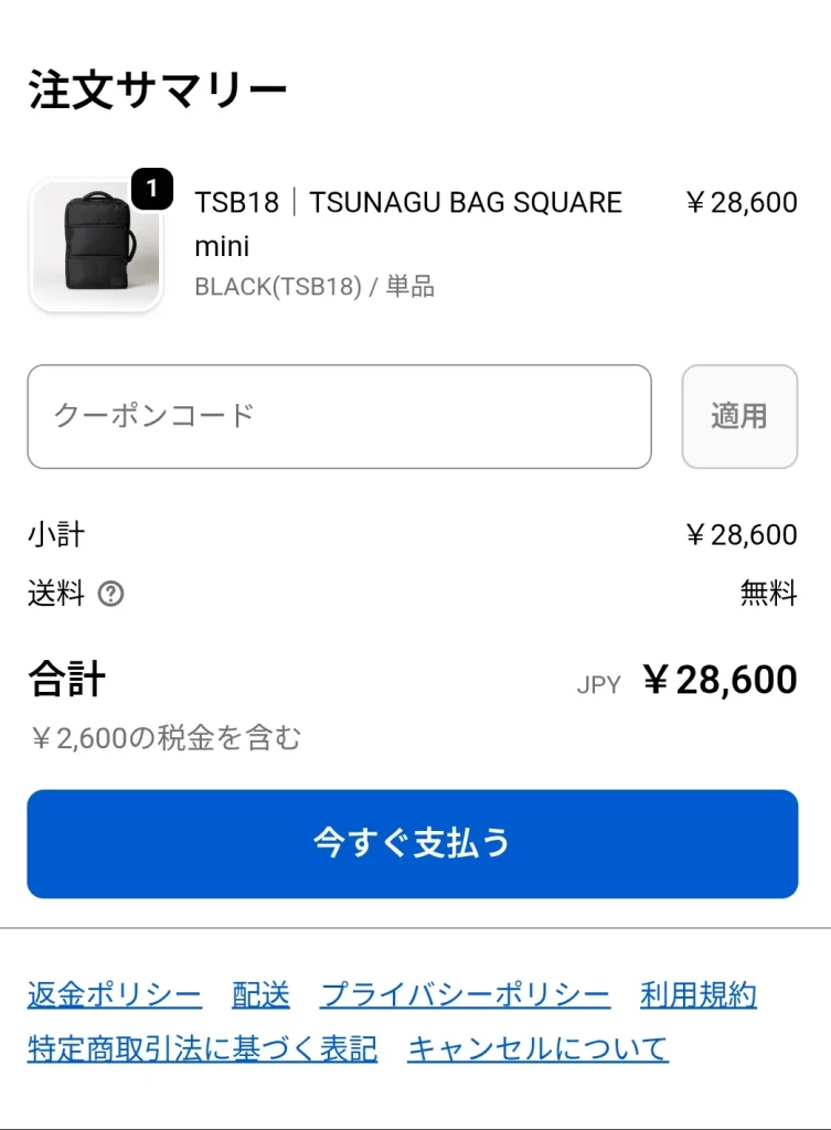クーポンコードを使用する場合は、かんたん決済前にご入力ください。