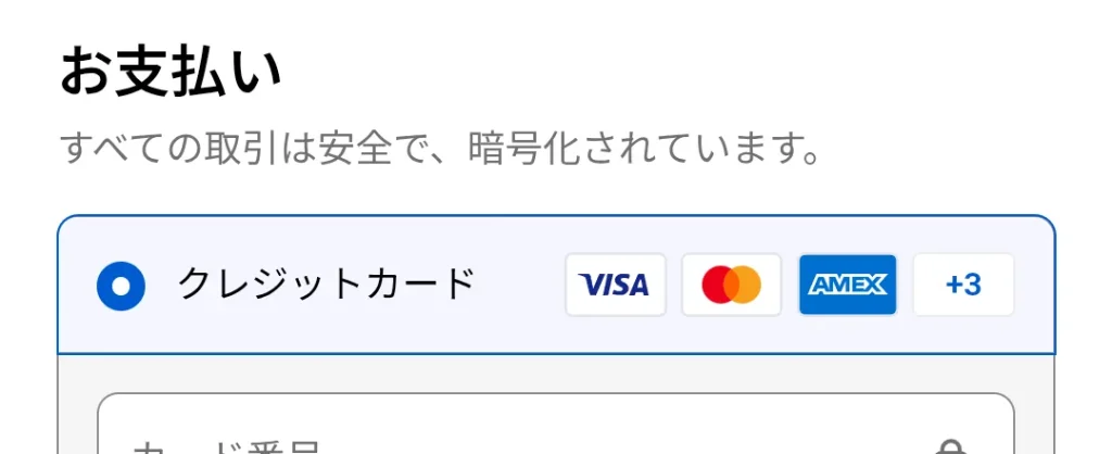 対応ブランド(VISA/Mastercard/AMEX/JCB/Diners/Discover)が表示されていることを確認してください。