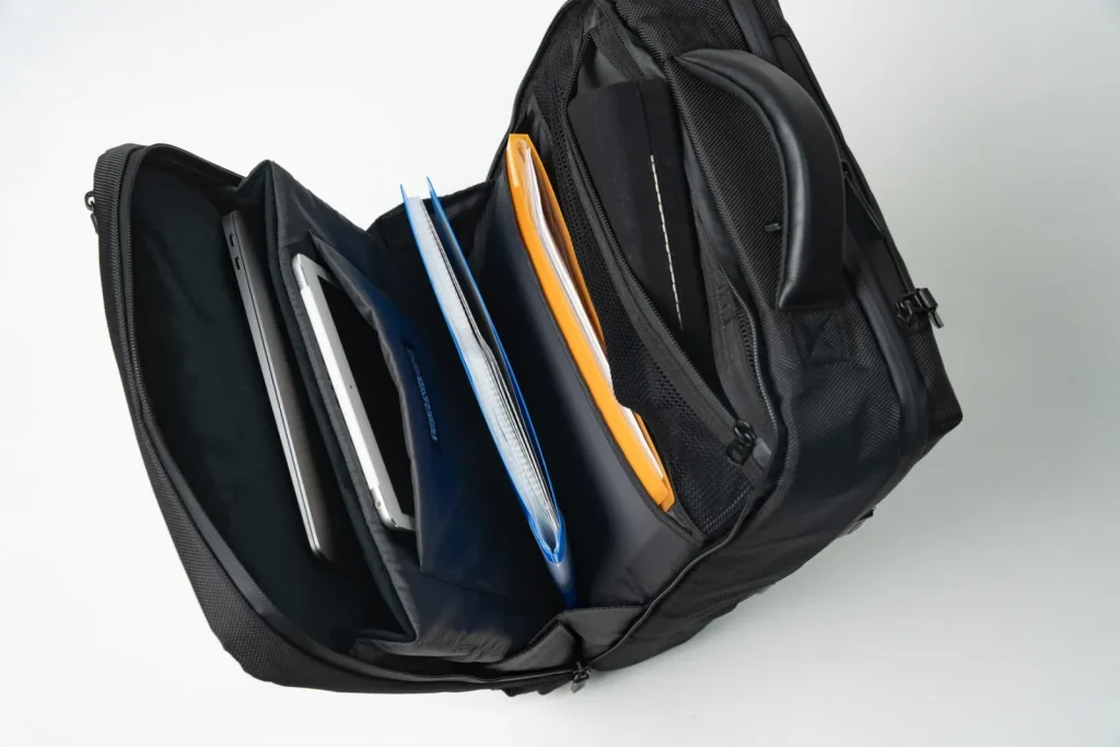PC・タブレット・書類を重ねて入れるのではなく、それぞれを分けて持ち運べる収納設計になっています。